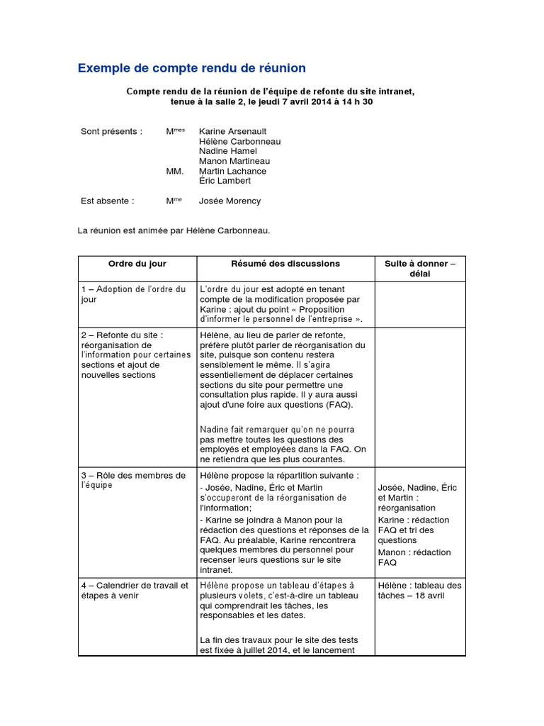 Exemple De Compte Rendu Reunion. Enfin, le compte rendu de réunion est également utile pour vous. Vous êtes à bon port !